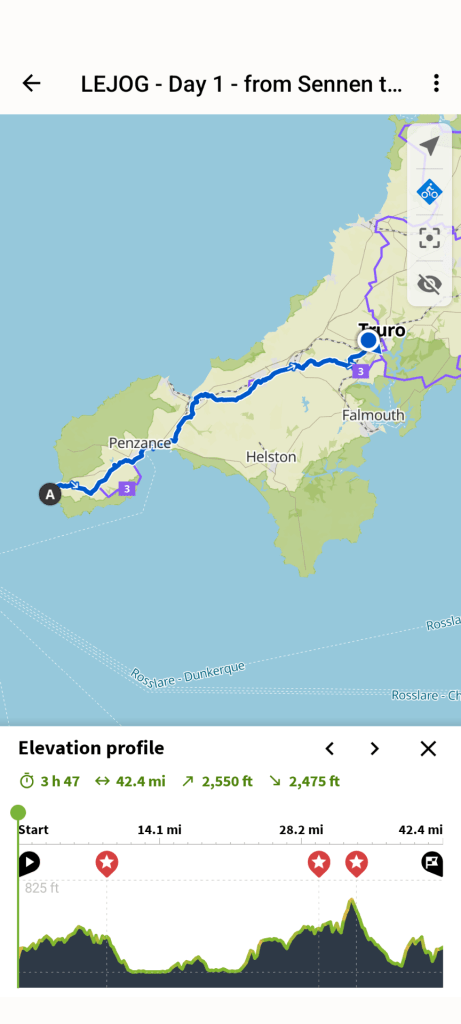 I have completed 590 miles since Land’s End and have about 430 miles to John O’Groats, so well over half way. It will be such a shame if I’m not able to complete it.