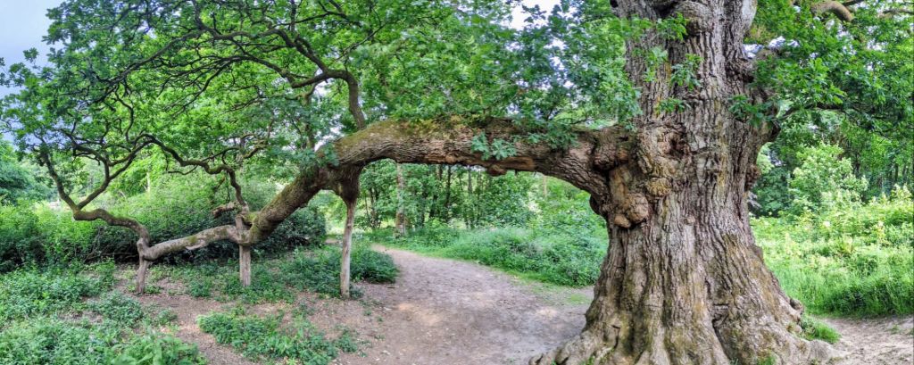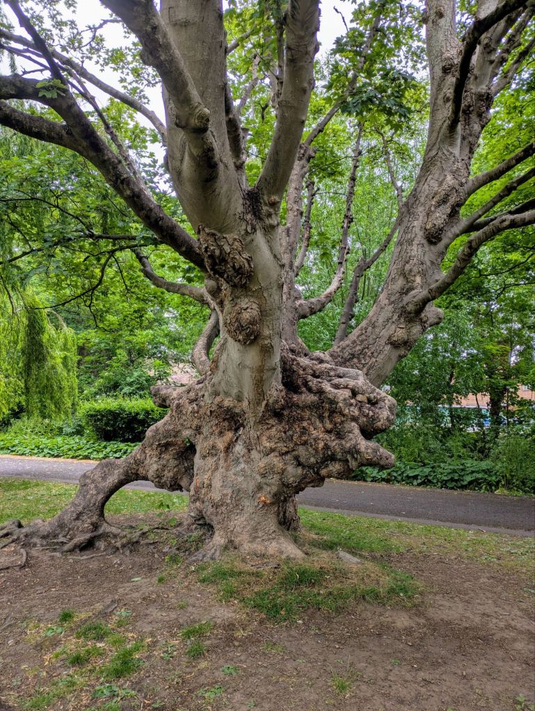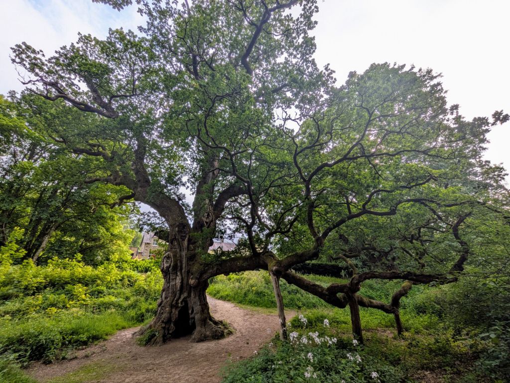 The tree is sadly no longer there. It also looked so much better in 1913 before cars and camper vans.
