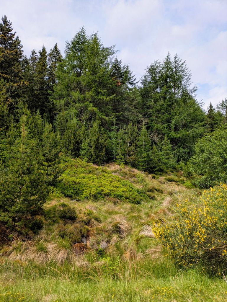 There are miles and miles of conifer plantations as far as the eye can see in all directions. In the distance you can see a patch that’s been harvested.